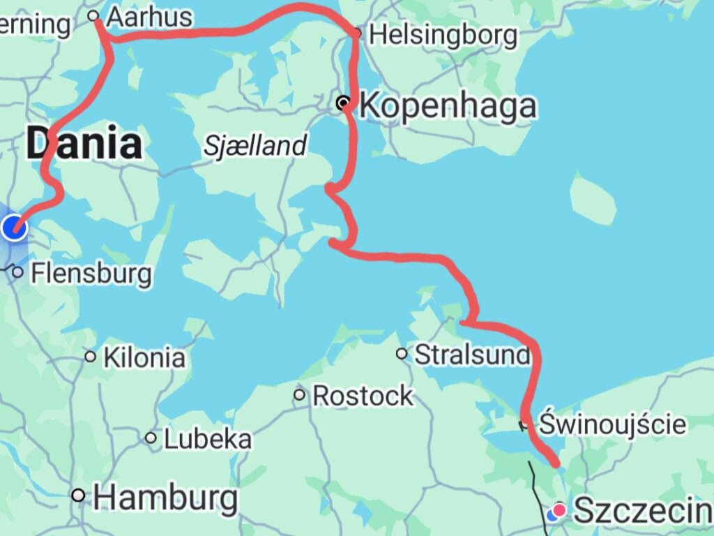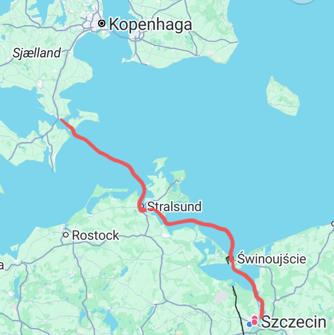 Trasa: Vordingborg – Stralsund – Świnoujście – Szczecin