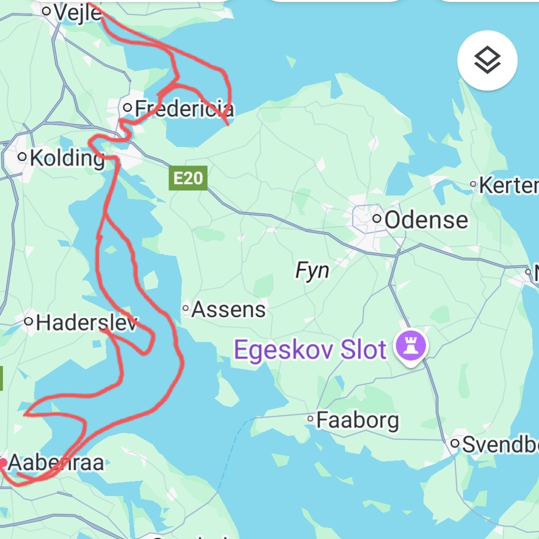 Trasa: Aabenraa – Kolding – Bogense – Vejle – Fredericia – Aabenraa