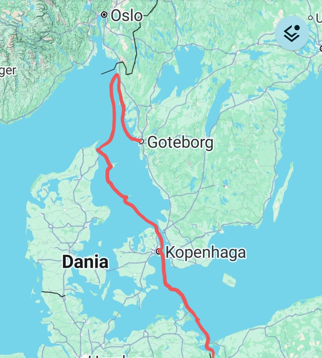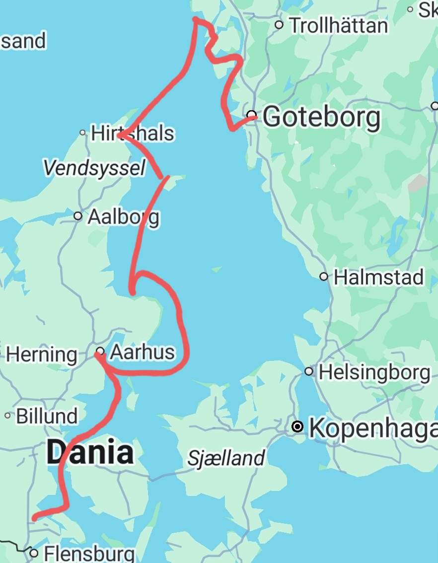 Trasa: Goteborg – Marstrand – Gullholmen – Lysekil – Smögen – Skagen – Læsø – Aarhus – Samsø – Middelfart – Assans – Aabenraa